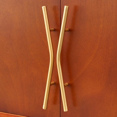 Complete your living room or dining room space with the Dennes Mid-Century Wire Accent Storage Cabinet from Buylateral. This cabinet features vintage charm from the angled metal handles to the unique patterned wire back ā both in a stunning gold finish. Display decorative items, books and your favorite serving pieces on the two ultra-sturdy tempered glass shelves. The lower cabinet features an adjustable shelf making it ideal for stowing items of various size. Constructed of MDF in a walnut finish, this cabinet will add a retro contemporary feel to any room.