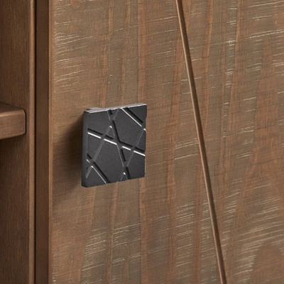 Provide your living space character and storage with the Dulce Entertainment Center from Buylateral. Farmhouse inspired with an urban twist, this piece features two cabinets for DVDs, gaming accessories and more. An open center shelf provides two levels for your cable box, streaming devices, and other media accessories. Back cutouts provide easy access for cord management, while also allowing air flow for inside equipment. Door panels are fashioned with a subtle geometric pattern and accented with contrasting square knobs with round legs in a stunning black matte finish. The solid pine and MDF entertainment unit is finished in a medium gray wash giving this cabinet a rustic chic appearance.