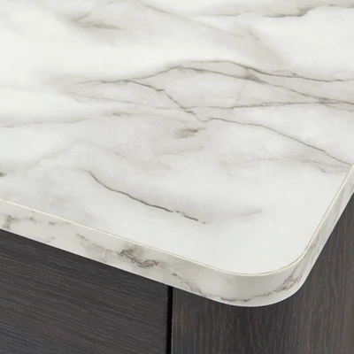 • Mid-Century styling with faux marble top and wood drawer pulls