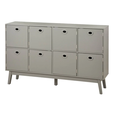 • Features eight storage compartments with grommet hole style door poor pulls and angled legs